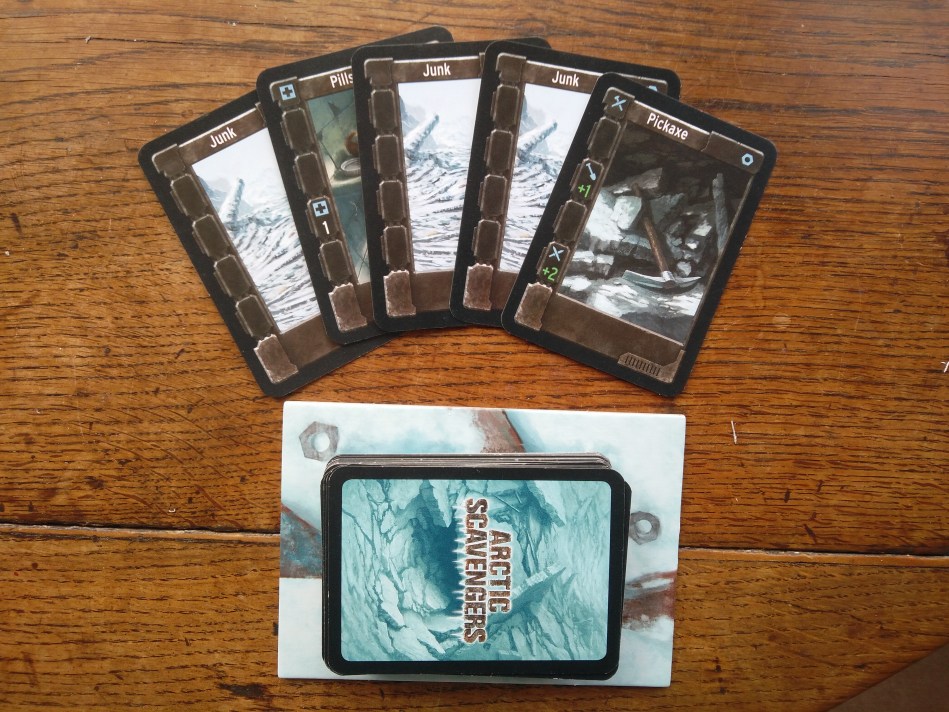 The junk pile is a brilliant piece of game design. It subtly adds to the game’s theme in so many ways. The deck itself is customisable: as you bring in more expansion modules you can tweak the ratio of junk to useful goods as well as changing exactly what cards you find. No matter what though, the junk pile elicits a sense of desperation. You never know what you’ll find, so there is always a risk to searching. Arctic Scavengers manages to saturate every part of the game with its bleak mid-winter theme and in no part is it more apparent than the junk pile.