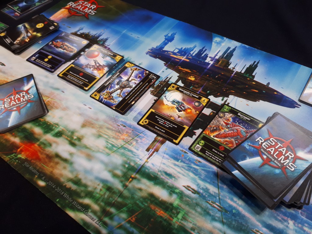 Nevi: Participating in the Star Realms tournament was the first time I had played with the Frontiers expansion. Like all of the other major Star Realms expansions, it can be entirely standalone – you don’t need anything else to play. In fact, this box comes with enough for up to four player which is neat addition. This is a base heavy deck of cards, with a lot of cool new abilities that trigger off bases or come on them. There are other new mechanics such as requiring multiples of a faction for abilities to trigger or being able to scrap cards to gain damage points. And thematically, it all makes sense for a frontier setting. All in all, this is another great addition to the ever growing range of Star Realms cards.