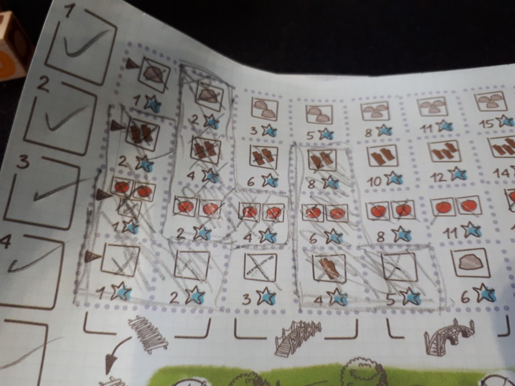 George: This was the first roll and write I’d played and I would describe it as pleasant? It was a nice way to spend 20 minutes wondering why I had far too many apples and not nearly enough stone.