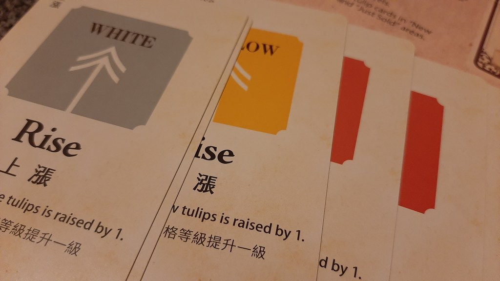 This is fantastic and will often lead to moments where you look around the board and see that two players are going to get into a bidding war over a yellow tulip and decide to get involved only to stop bidding really early on just so you can rake in some free money. If you know what people demand, then you can make some easy money from the supply.