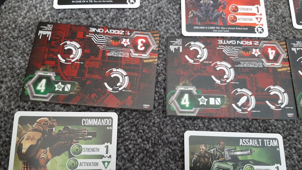 So now for the less good. Neuroshima Convoy can be very ‘take that’ and by that I mean you’ll have both players just doing things that their opponent won’t be able to do anything about and it often feels quite unfair. This is especially true for the first few times you play the game. Once you’ve got a few rounds under your belt and you roughly know what to expect from the cards then you know the scope of possibilities but until then things can feel a little cheap. Due to this fact, you can’t have too much of a long term strategy as the board state and shifts constantly. And while that constant movement is one of my favourite things in Neuroshima Hex, it doesn’t work as well here. The scope of possibility is far larger than Hex and that means rather than knowing your enemy will play two tiles they might play anywhere from 1-6 cards that could do anything. This can mean that winning a game of Neuroshima Convoy feels like it can happen by chance.