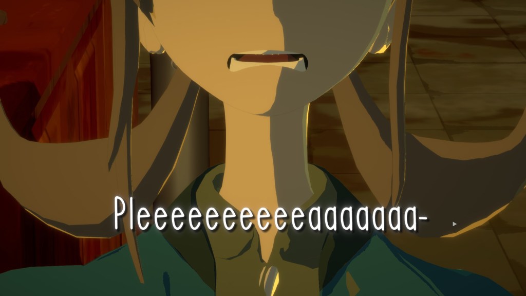 Anyway: speaking of the dialogue, I suppose it would be remiss to review a visual novel without talking about the writing. In general, the dialogue (it is, after all, mostly dialogue) is breezy and believable, managing to bear the weight of the plot’s emotiveness where it counts. There are a few moments of levity where it feels like the game is trying a little too hard to communicate the humour, straining a little in a format with no internal narration to the detriment of the conversational tone. This usually involves a bit of scattershot slang deployment that doesn’t quite stick the landing, but it doesn’t bring the rest of the game down, and as the game progresses it hits its narrative stride.