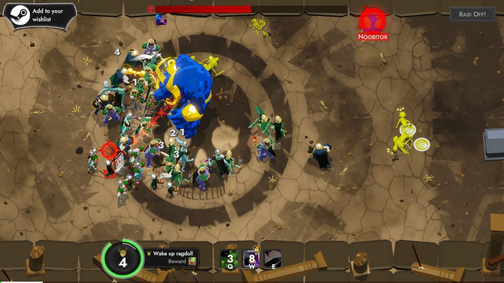 Raid Off is a game about RTS-style micromanagement as applied to a raid group in an MMO. It’s a cute concept that combines well with the game’s ragdoll-physics sense of whimsy, but I think the micro elements are a little too intensive for my tastes. Moving your wee guys out of ‘the fire’ would definitely take a Korean level of Starcraft ability that I do not possess.