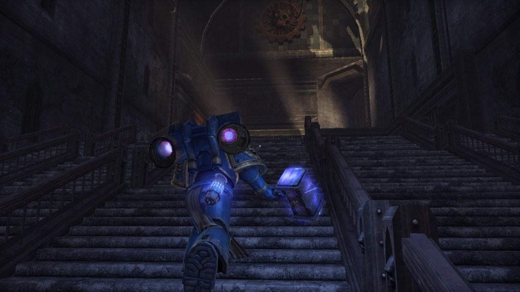 I chose to play Space Marine on Hard this time, having completed the game on Normal the first time I played it (I usually like to try out a game’s ‘medium’ difficulty first, as this is usually where the designers have given the most attention). I was a little worried going into this that it would irreparably damage the central power fantasy that makes Space Marine’s combat enjoyable; slashing through hordes of enemies as a nigh-invulnerable hulk in 8 feet of power armour. Surprisingly, it held up pretty well and, if anything, added to the experience. My fuzzy, decade-old memories of playing this game when it came out tell me that I didn’t make much use of some of the game’s core mechanics, like the Fury activation, or throw too many grenades, or consider enemy types when choosing weapons before an encounter. There’s just a little added layer of tactical depth when it comes to playing the game through as a slightly more delicate 8ft hulk.