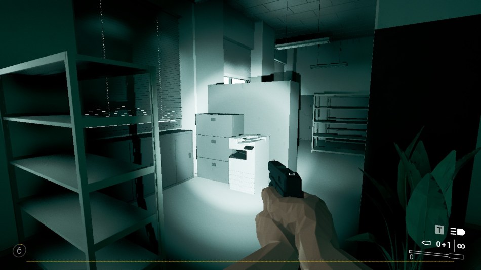 HOLE takes heavy inspiration from ‘the backrooms’; a weird, office/industrial liminal space from the realm of internet creepy pasta. Tight corridors, desk partitions and rack shelving make up a hellish maze in which you’ll try and survive. This is a shooter however, and you’re not entirely powerless in the face of what you’ll encounter in these corridors. Trusty Glock in hand, you’ll creep from room to room in search of an extraction point.