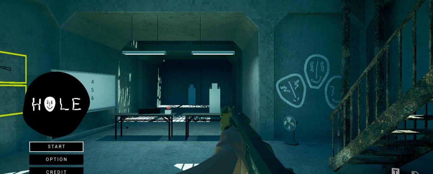 For all it’s creepy atmosphere and growing sense of threat, HOLE’s gun-play is satisfying. A single head shot will suffice for all of the basic enemies and the stun mechanic helps mitigate the tedium that can arise from bullet sponge armoured foes. Shooting their legs or kicking then down before mag dumping has a certain comedic quality.